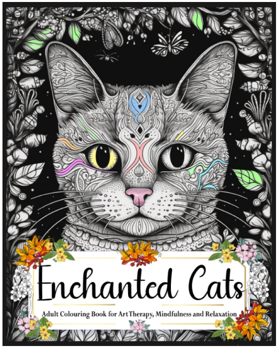- This Enchanted Cats Colouring book is an enjoyable way to unwind and de-stress while appreciating the beauty and playfulness of cats.