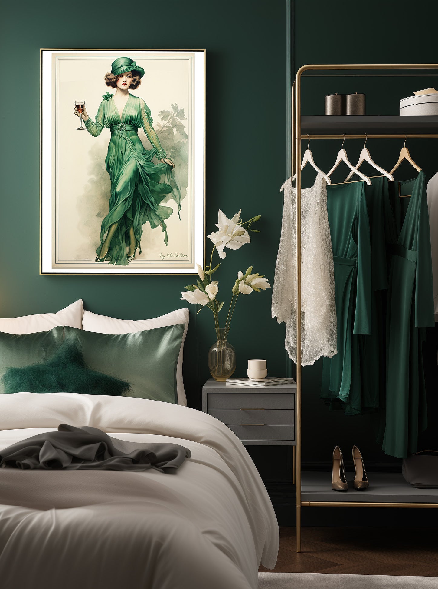 Vintage Style Irish Art Nouveau Fashion Framed Poster. Celebrate the spirit of Ireland and the timeless allure of the 1920-1930s fashion with this extraordinary framed print. Add it to your collection of art or give it as a thoughtful gift to a fellow admirer of the past. Make your space more inviting and elegant with this mesmerizing piece that captures the essence of Ireland's fashion and grace from a bygone era.